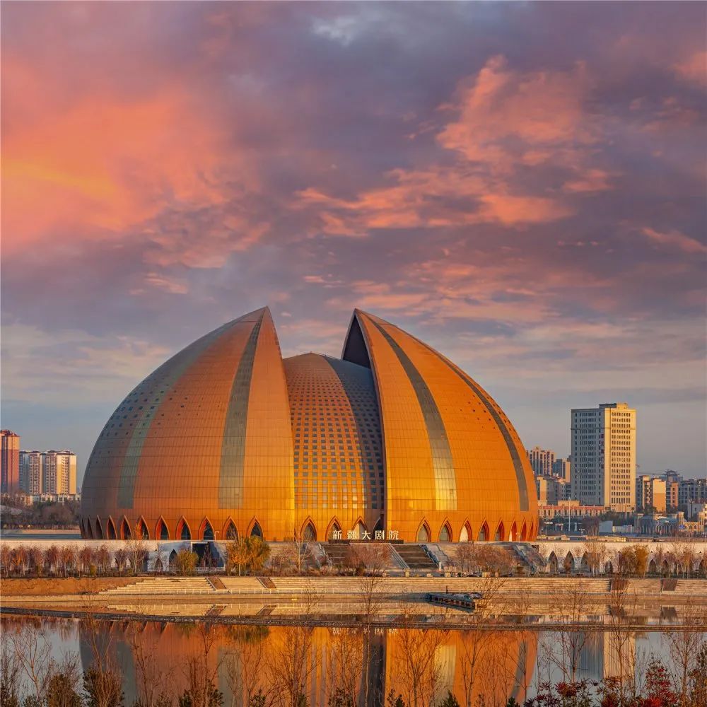 座落于昌吉的新疆大劇院,是中國(guó)目前最具民族文化特征的標(biāo)志性建筑,也是印象西域國(guó)際文化旅游產(chǎn)業(yè)園的核心建筑。主體坐落在平緩的臺(tái)基上,以盛開的天山雪蓮為原型,通過抽象與創(chuàng)新的設(shè)計(jì)手法,形成里外套層的穹頂造型主體形象。